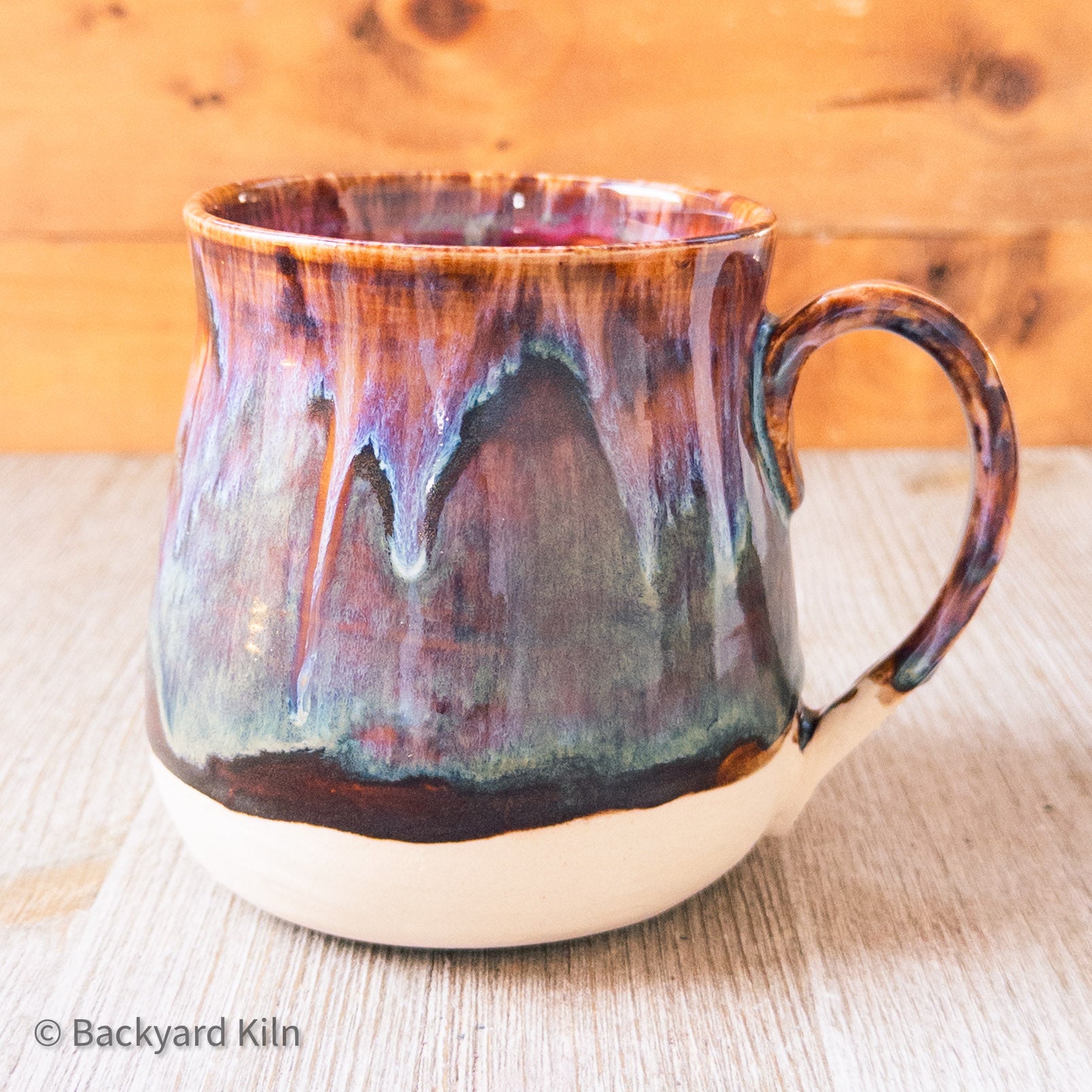 This piece was handmade by Taylor: thrown, trimmed, detailed, fired, glazed, and fired again in our home studio. The glaze is INCREDIBLE, especially in the sun!