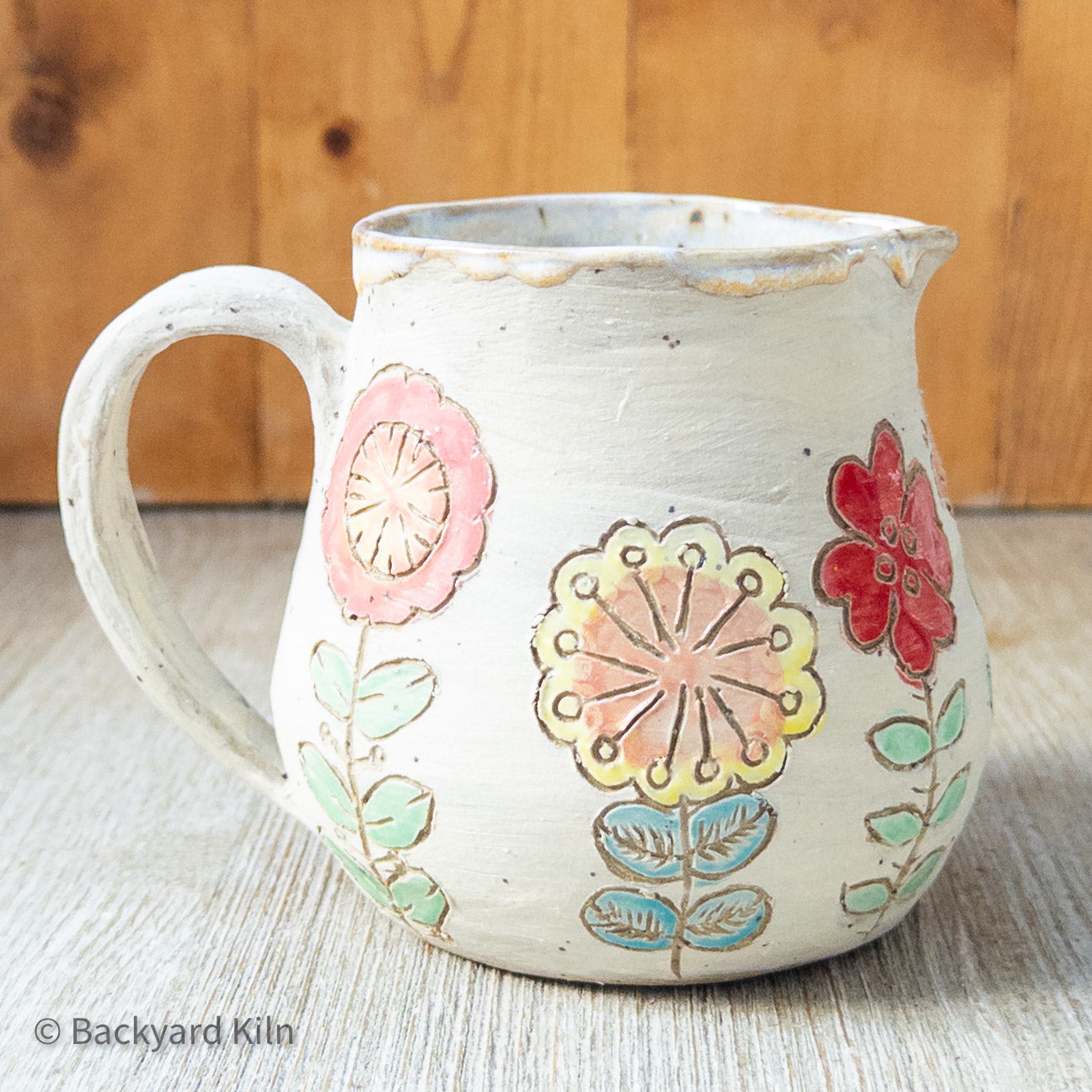 A piece I made by hand in my studio. I threw it on the wheel, handled, detailed and carved it, then I fired it in my kiln, covered it with gorgeous glazes, and finally fired it one more time to make it food safe and watertight.