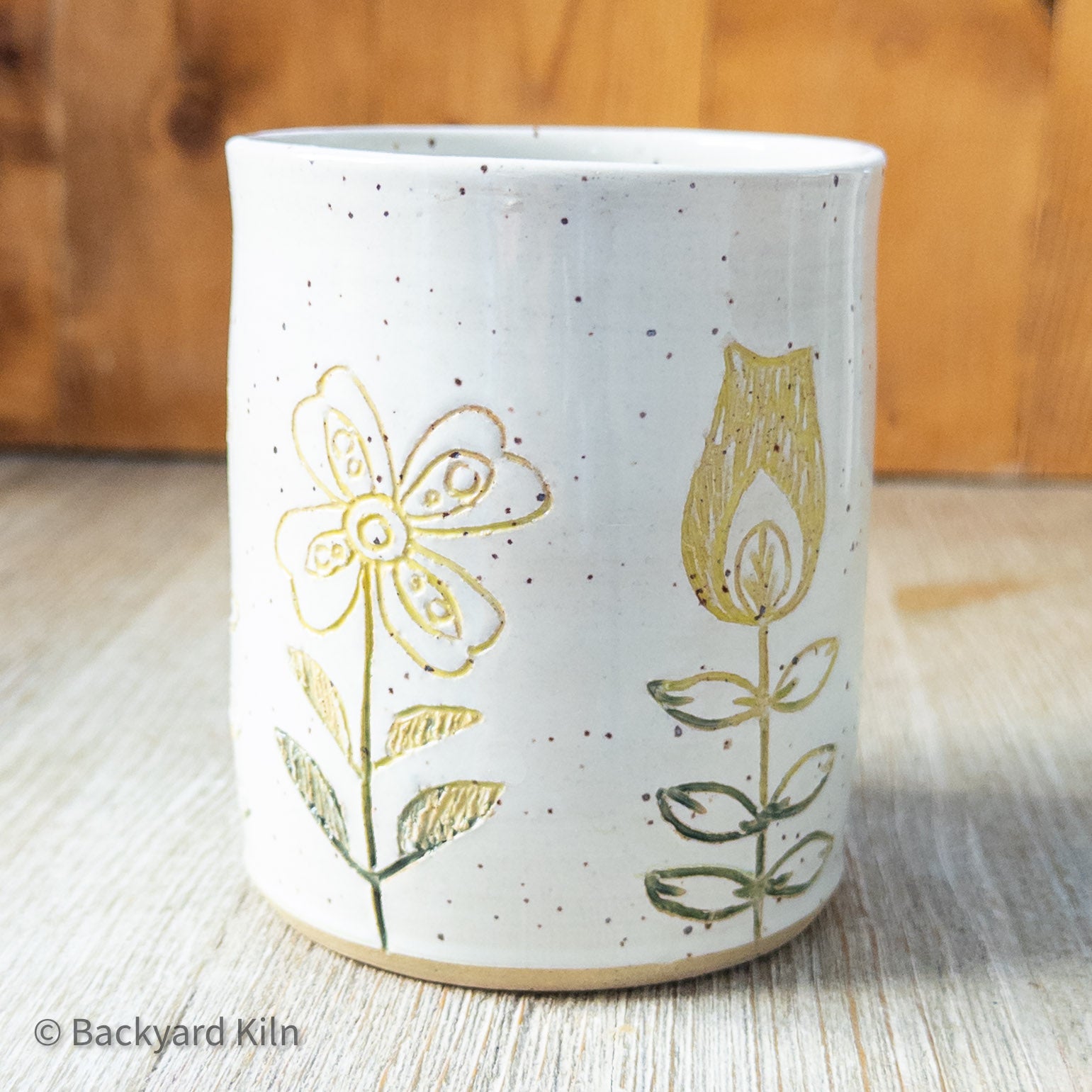 A piece I made by hand in my studio. I threw it on the wheel, handled, detailed and carved it, then I fired it in my kiln, covered it with gorgeous glazes, and finally fired it one more time to make it food safe and watertight.