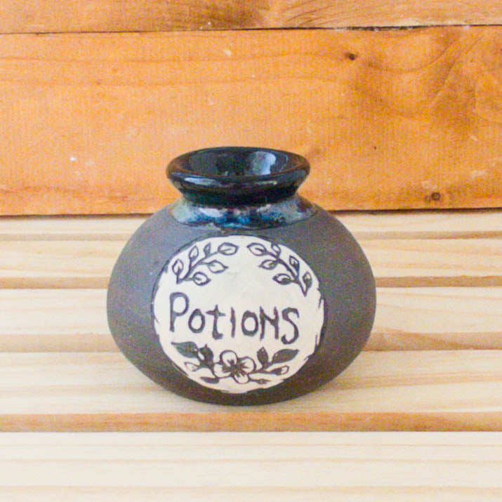 This vase was handmade by Taylor: thrown, trimmed, detailed, fired, glazed, and fired again in our home studio. It stands 3.5” tall.
