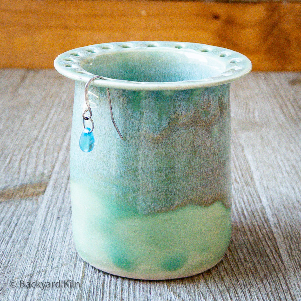 A hand-thrown ceramic earring holder, made by Taylor in our home studio, great for the vanity table, beside the bed, or in the bathroom. About 3” tall, dishwasher safe and as durable as any of my mugs.