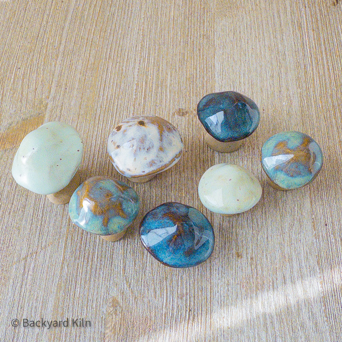 These friendly little owls are waiting to follow you home! They are made of white clay with red iron oxide accents, and measure about 1-1.5” tall.