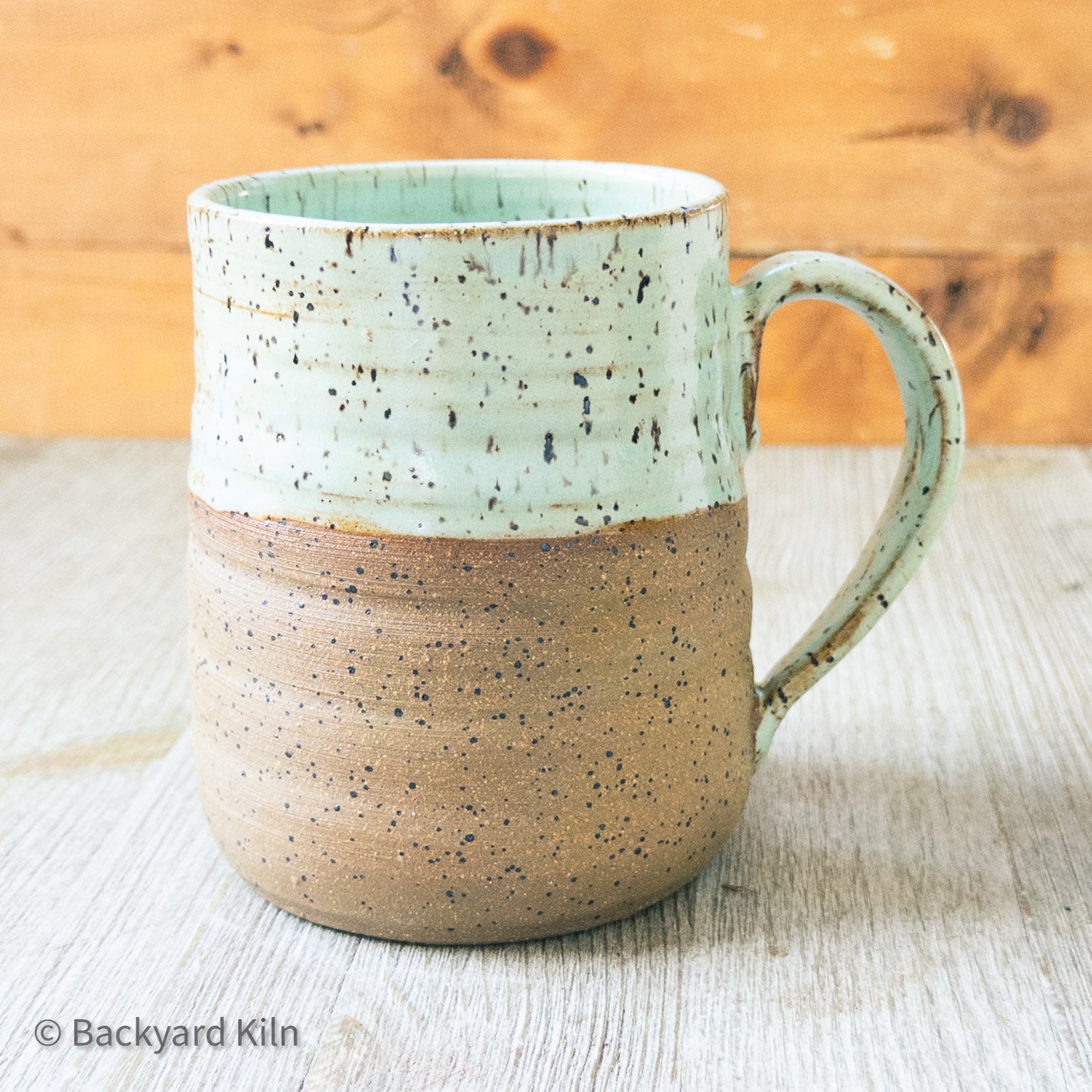 This irreverent mug was handmade by Taylor: thrown, trimmed, and handled, detailed, carved, fired, hand painted, glazed, and fired again in our home studio. It is dishwasher and microwave safe. It holds about 15 oz of your favorite beverage.